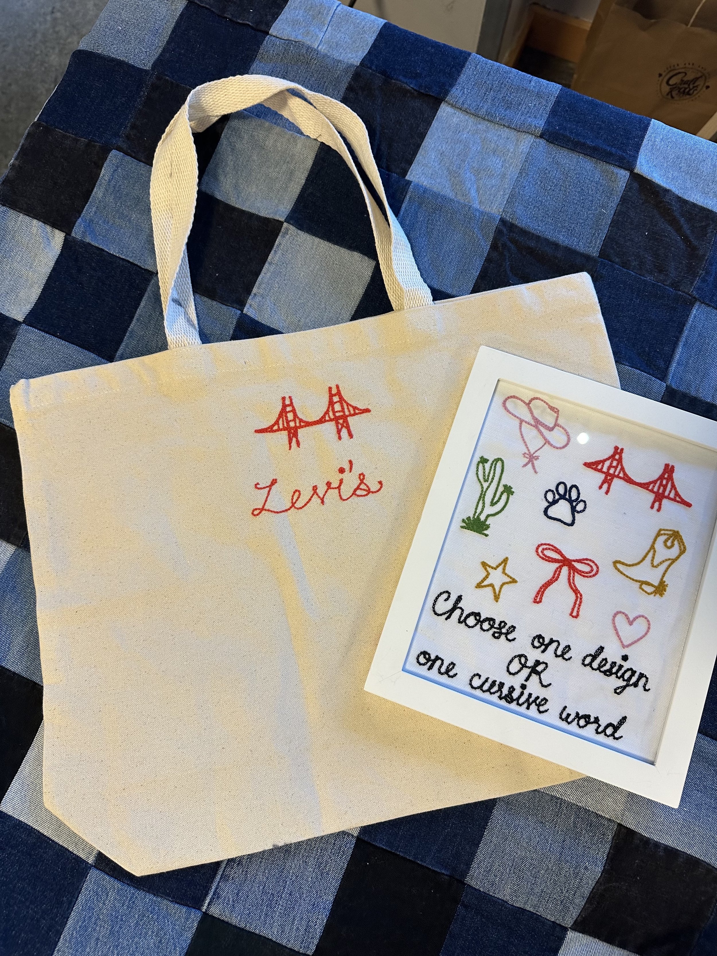 Live chainstitch embroidery is the perfect addition to your next event—whether it's an in-store brand activation, a work party, or a private celebration. On-the-spot stitching offers guests a unique, unforgettable experience and a one-of-a-kind custom piece to take home. Fill out the form below and I will be in touch shortly!